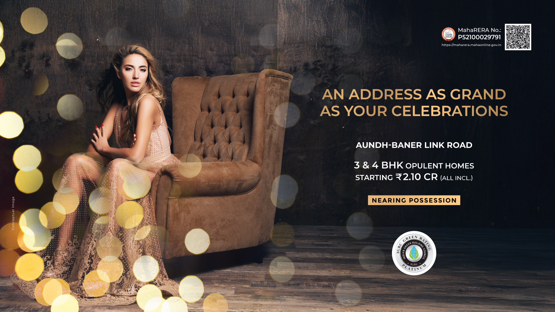 Welcome to The Address – an elegant enclave of 180+ opulent 3 & 4 BHK residences, perfectly positioned in the serene heart of Pallod Farms, right off the prestigious Aundh–Baner Link Road.